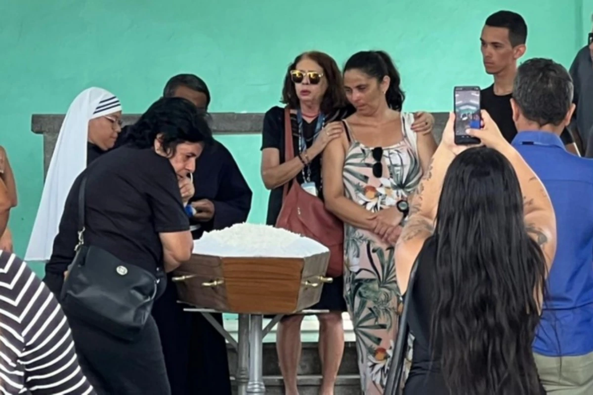 Durante último adeus à filha, Lúcia Aparecida da Silva foi filmada sendo consolada por familiares.