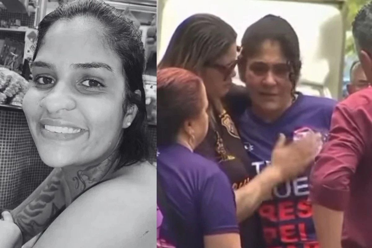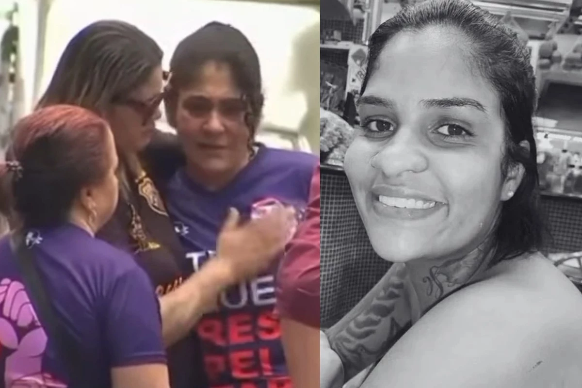 Lúcia Aparecida da Silva surgiu visivelmente abalada enquanto era consolada pela família.