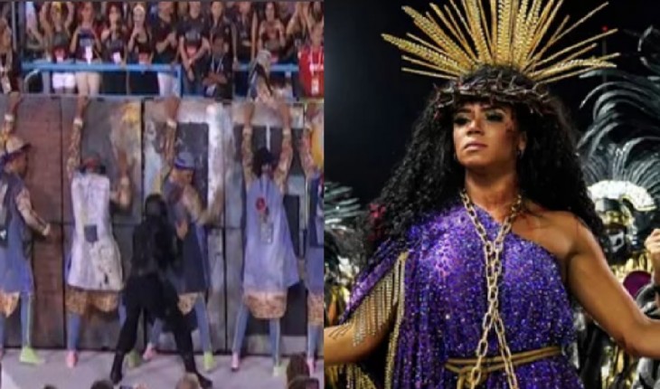 Escola de samba colocou homens vestidos de policiais para darem “dura” nos discípulos de Jesus Cristo.