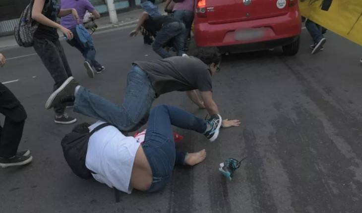 Manifestantes protestavam contra a reforma da previdência e paravam trânsito em Niterói, no Rio de Janeiro.