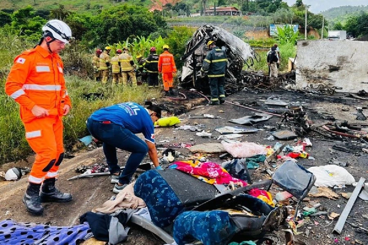 De acordo com o CBBMG, 22 óbitos foram confirmados; o estouro de um dos pneus do ônibus causou a batida.