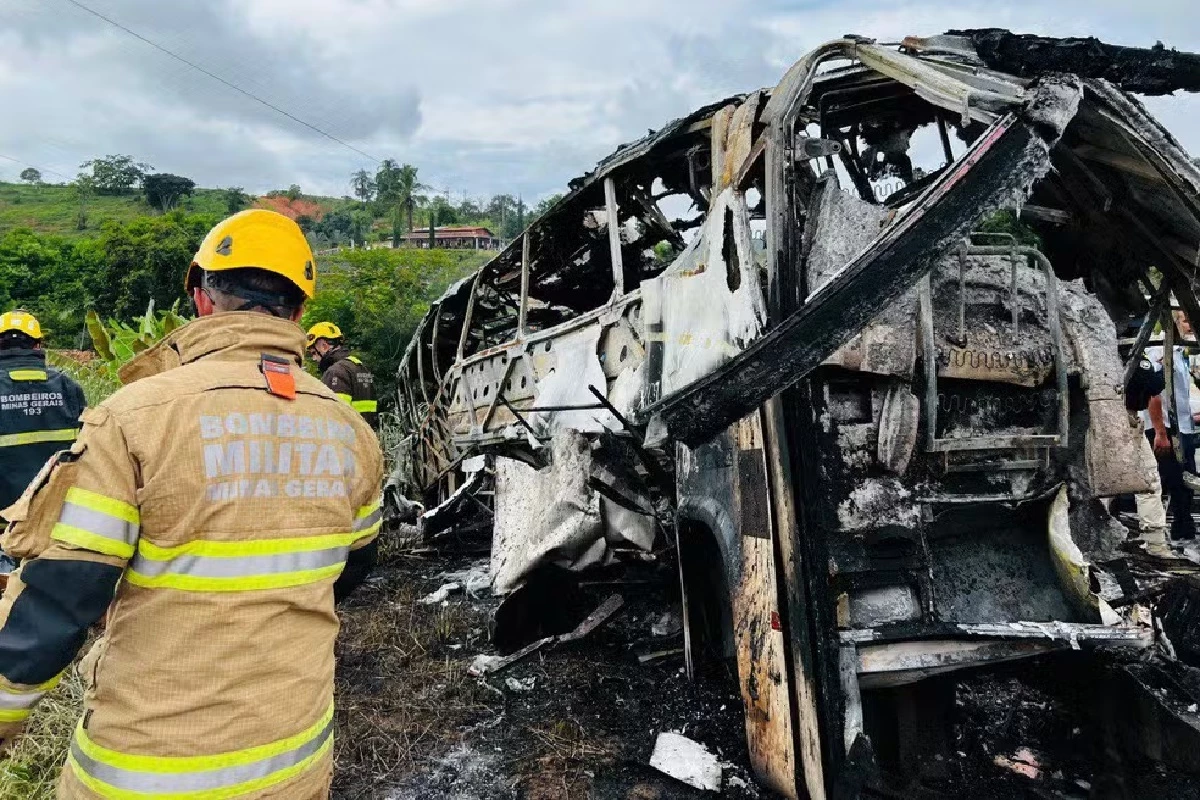 O ônibus transportava cerca de 45 passageiros; o Corpo de Bombeiros confirmou 22 vítimas fatais.
