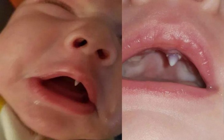 Um bebê irlandês com apenas 11 semanas de vida acordou com presa pontiaguada como dos vampiros.