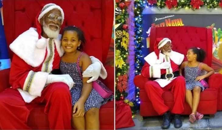 A pequena Joelma, de apenas 9 anos de idade, nunca havia encontrado um Papai Noel que tivesse a mesma cor de pele que a sua.