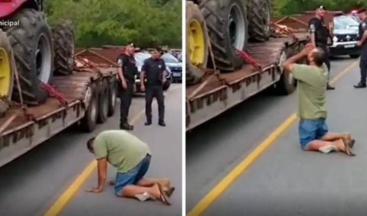 Homem não segurou a emoção ao ver que sua angústia finalmente tinha acabado após duas semanas sem seus tratores.