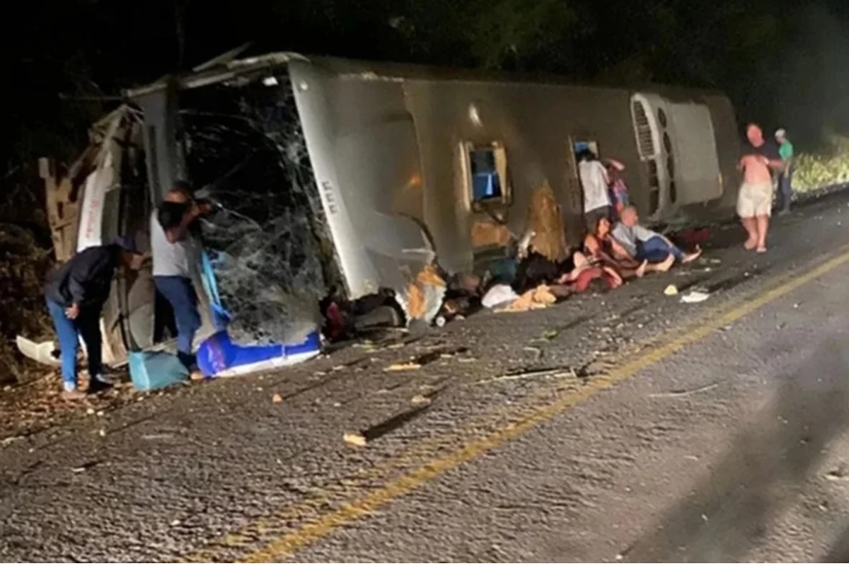 Ônibus levava 38 passageiros e dois motoristas no momento do grave acidente.