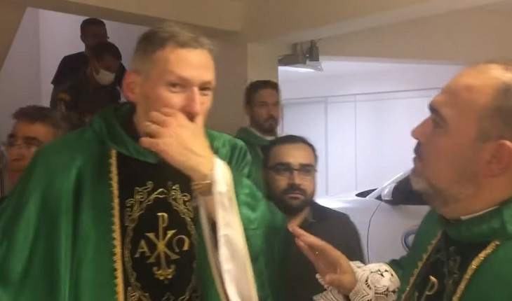 Um vídeo mostra o momento exato em que padre Marcelo foi agredido durante missa.