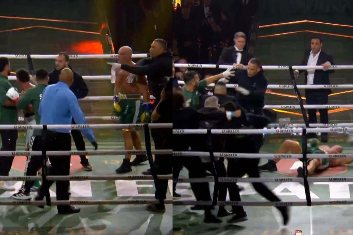 Combate termina no 4º round com desclassificação e equipes invadem o ringue.