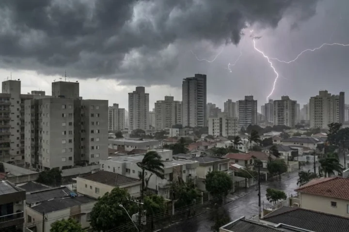Avisos meteorológicos indicam risco de tempestades e ventos de até 100 km/h em diversas regiões do país até a manhã de sábado.