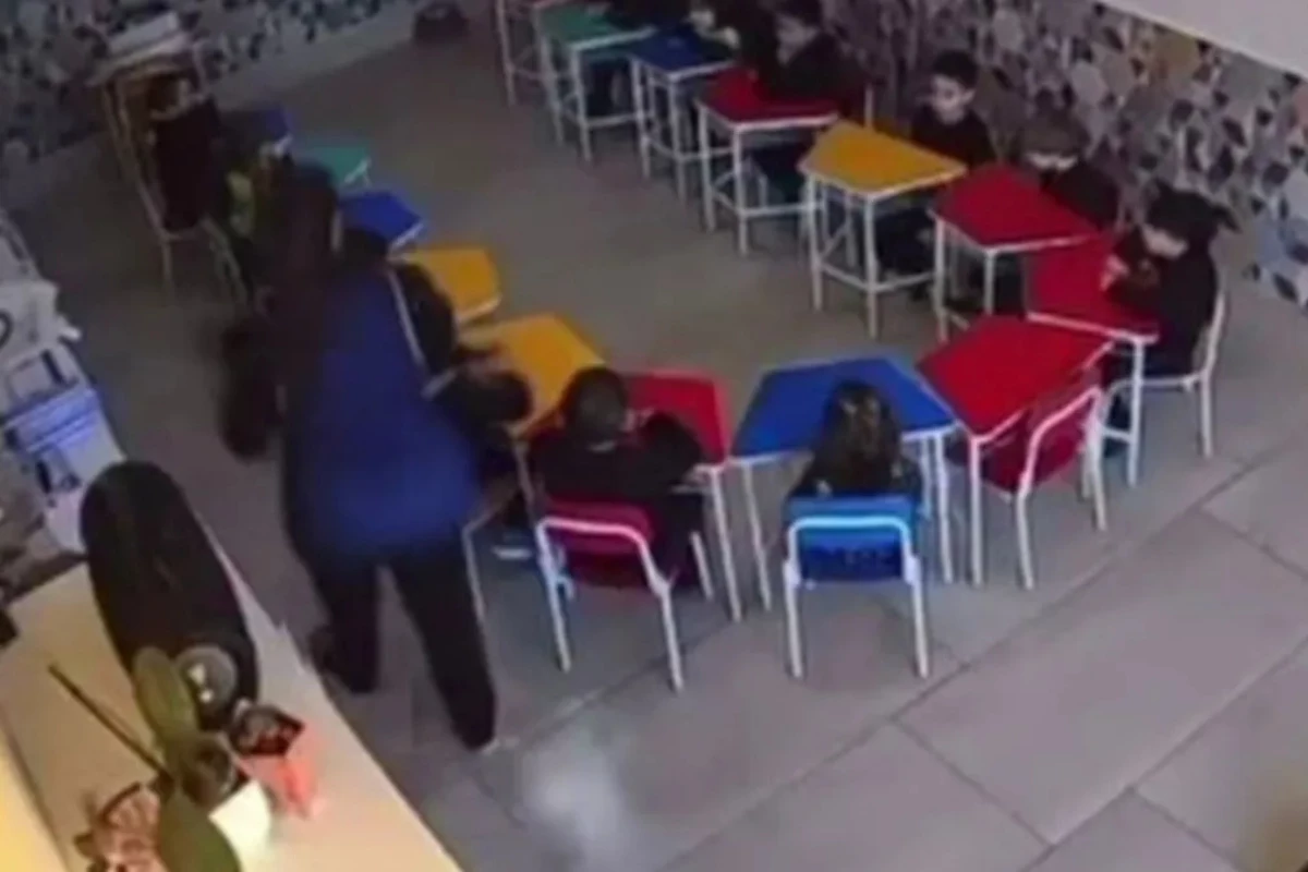 Professora foi filmada pela câmera de segurança da instituição de ensino infantil.