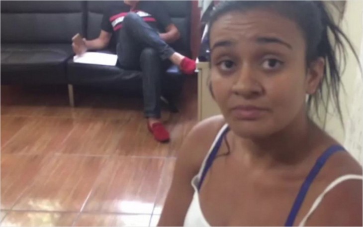 Imagem mostra a vendedora Leilane tentando salvando o motorista do caminhão enquanto homem fotografa.