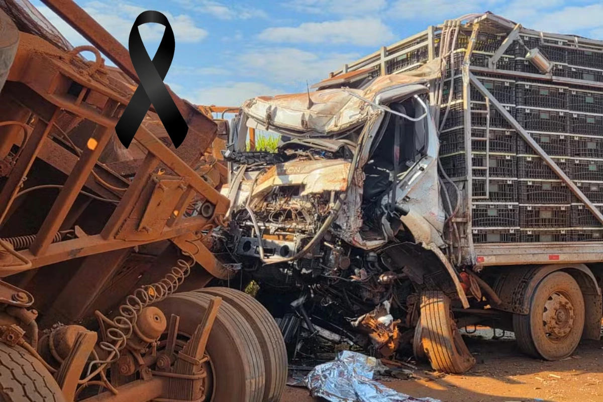 Colisão entre dois veículos de carga, um de frangos e outro de cana-de-açúcar, deixa um motorista sem vida.