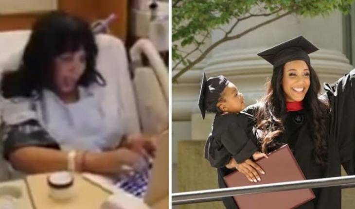 Mãe solo que fez prova em trabalho de parto, se forma com a filha nos braços