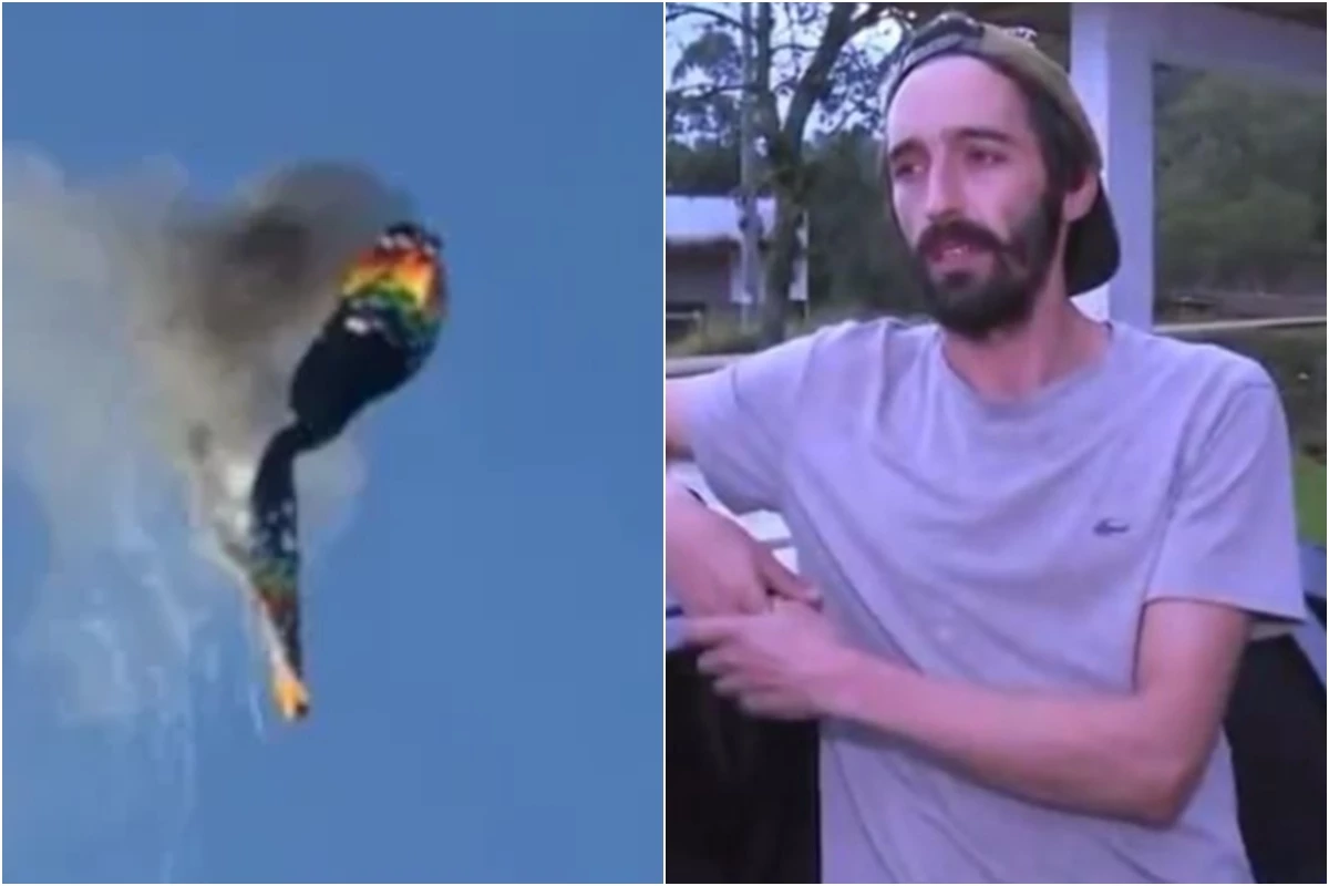Sobrevivente contou como foi jogado para fora de balão que pegou fogo em Santa Catarina.
