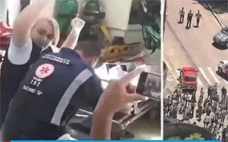 No Brasil Urgente desta quarta (13), Datena mostrou um vídeo com os dois atiradores de Suzando fazendo suas primeiras vítimas.