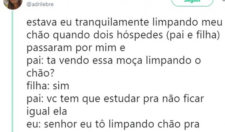 A mulher disse que trabalha na limpeza do hotel para se manter na faculdade de letras.