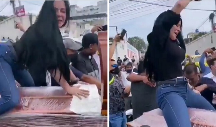 Mulher viraliza após dançar em cima do caixão do marido