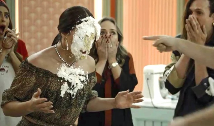 Abel é eliminado do Best Cake por atirar bolo na cara de jurada rigorosa, Vivi Guedes.
