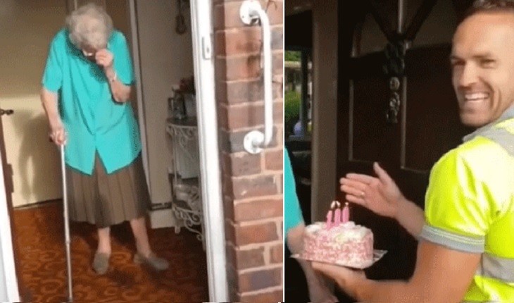 Vovó solitária é surpreendida por coletores de lixo no seu aniversário de 100 anos