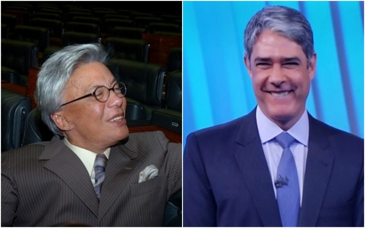 William Bonner e Renata Vasconcelos fazem cara de indignação ao dar notícia.